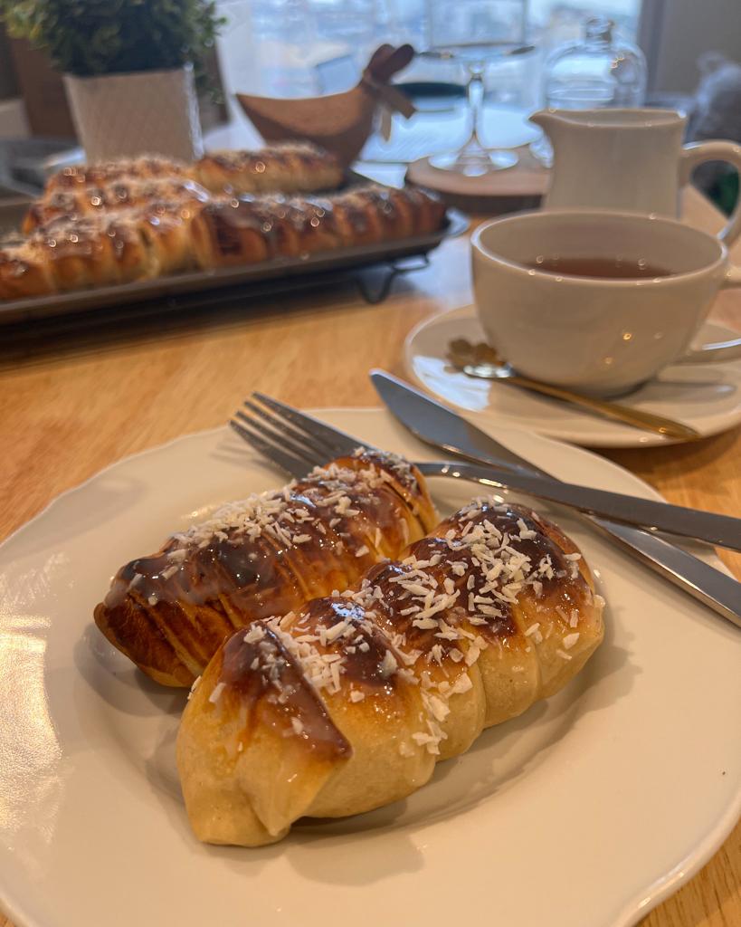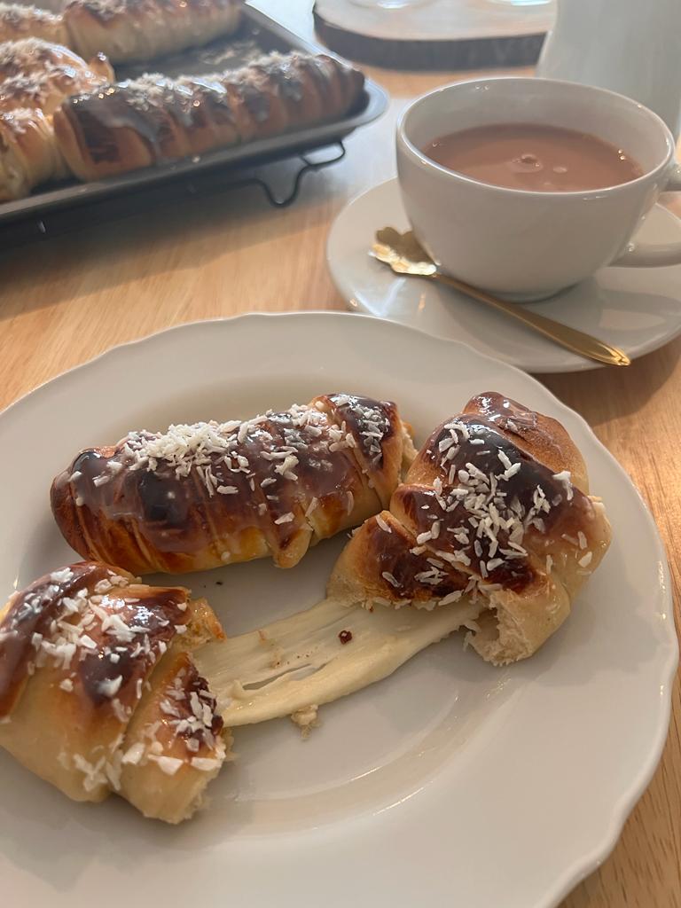 Hand kneaded sweet soft bread, filled with delicious mozzarella cheese, sprinkled with coconut.