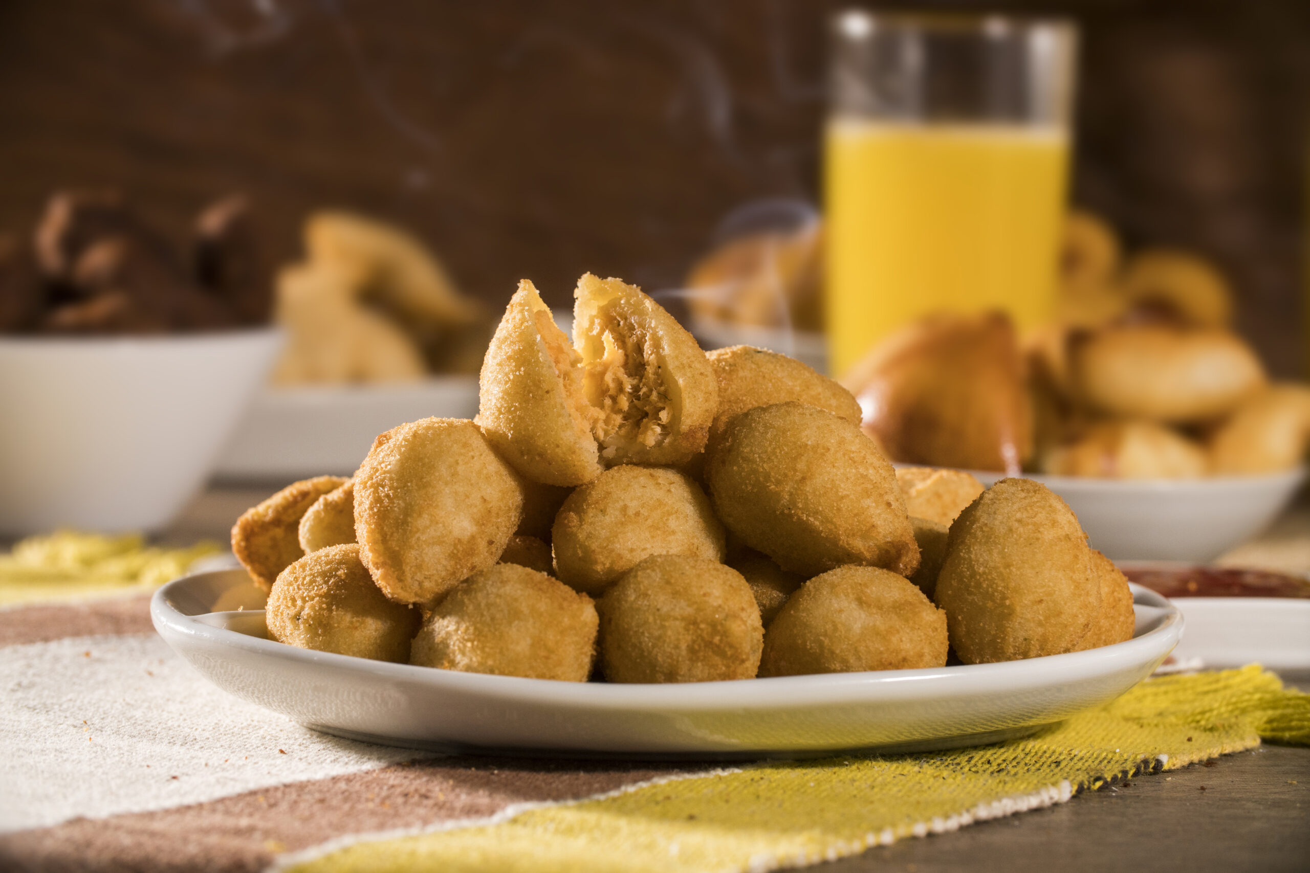 Street food classic brazilian – mixing shredded chicken breast with cream cheese, coating in a batter and breadcrumbs and shaping to chicken drumsticks.